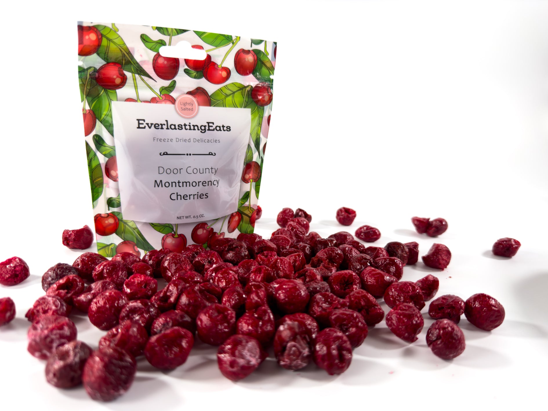 Sourced locally in beautiful Door County Wisconsin, these freeze-dried Montmorency cherries come in whole cherry form. They’re pitted, have no added sugar and are 100% natural! The Lightly Salted cherries contain Pink Himilayan Sea Salt!